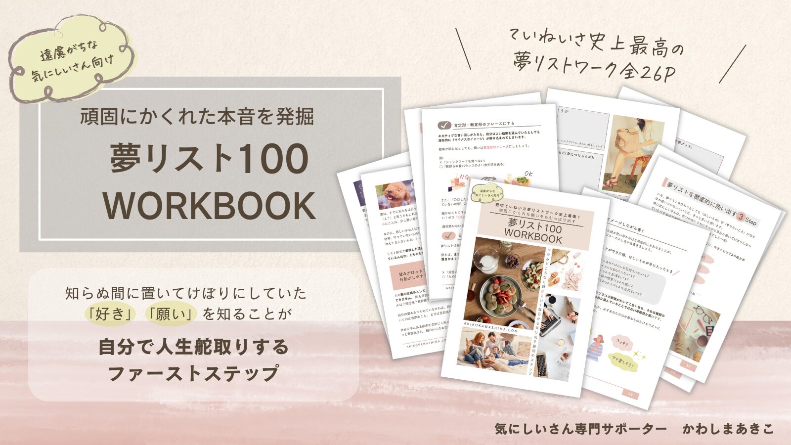 気にしいさん特化100の夢リストワークブックを期間限定でプレゼント中